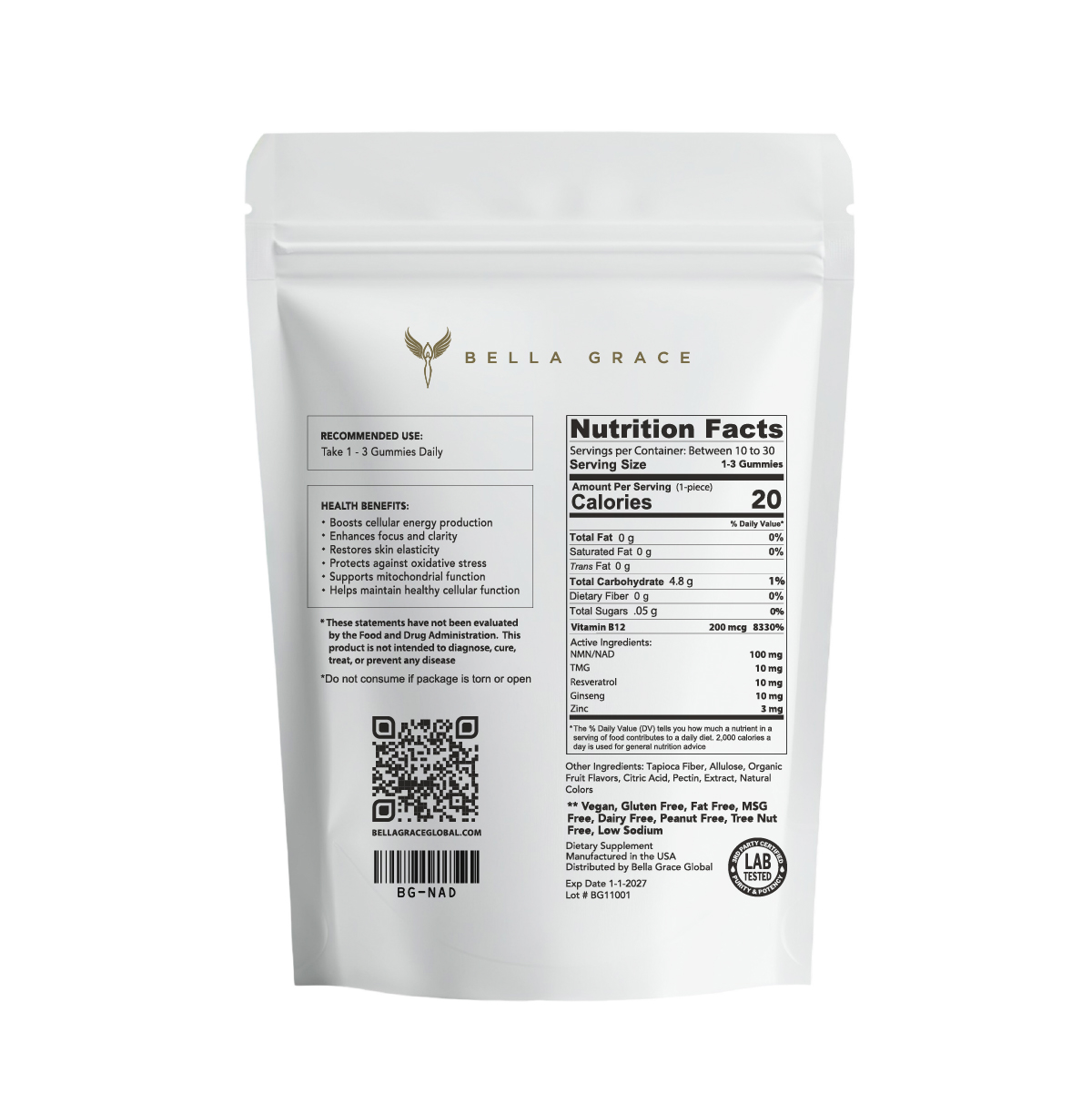 Supports healthy methylation — a critical process involved in cellular repair, cardiovascular health, and cognitive function. TMG works synergistically with NMN to help optimize NAD+ metabolism and enhance overall cellular performance.*